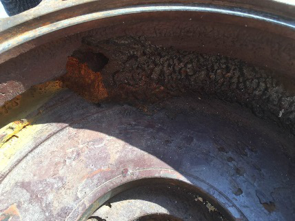 (3)3號隔板φ508mm凸槽缺陷:厚2.76mm,高4.3mm,弧長97.7mm,******磨損深度4.3mm,修復(fù)面積1.11dm2。