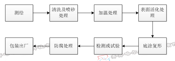 (1)將所有要進(jìn)行修復(fù)防腐作業(yè)表面進(jìn)行清洗預(yù)處理,將所有污物沖洗干凈。
