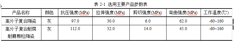 (2)高分子顆粒陶瓷是一種雙組份、填充陶瓷小顆粒、高性能表面涂層材料,主要成分是碳化硅、金屬碳化物和超硬陶瓷,具有良好的耐磨蝕和腐蝕性能,作為耐磨蝕和耐腐蝕保護(hù)涂層被廣泛的應(yīng)用于各種化工設(shè)備及通用設(shè)備。適合應(yīng)用于灰漿泵、水泵、風(fēng)機、水輪機蝸殼、凈化煙道、氧化鋁粉輸送管道等內(nèi)壁防腐耐磨局部或大面積修復(fù)。